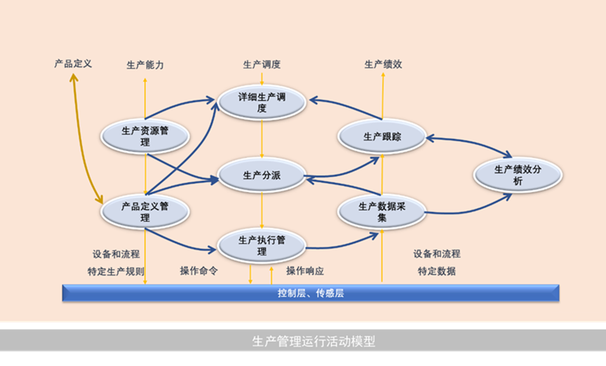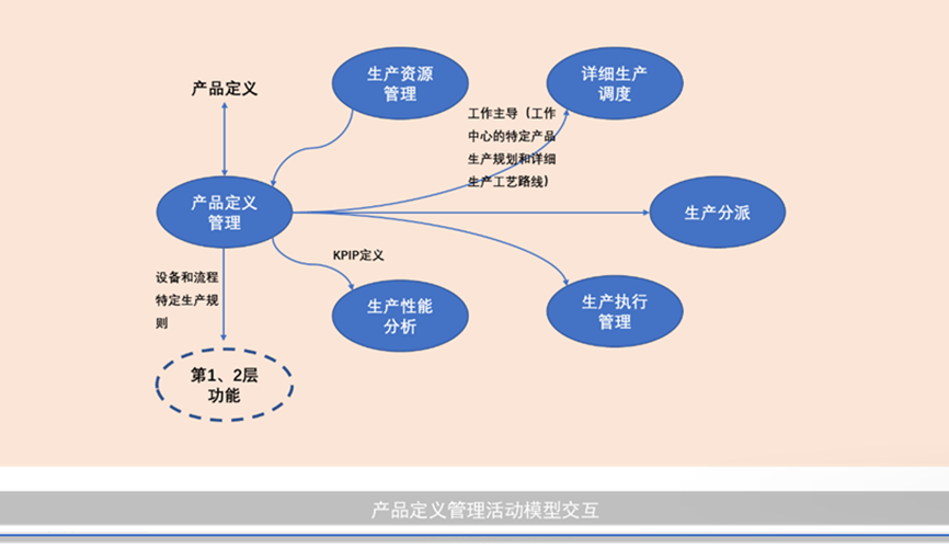 产品定义管理活动与生产调度、生产分派和生产执行管理相互完成工作,并与研发和工程相交互以得到执行工作所需的产品生产规则。